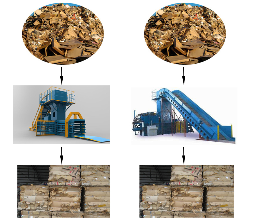 用于廢紙(紙板箱、新聞紙等)、廢塑料(PET瓶、塑料膜、周轉箱等)、稻草等松散物的打包。